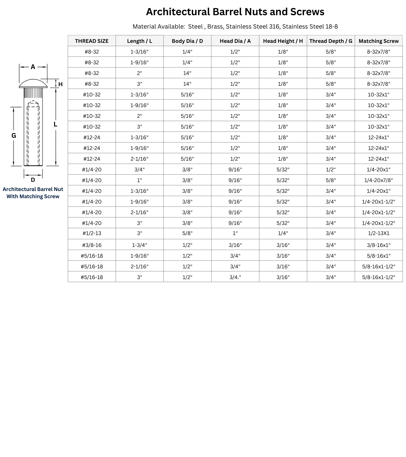 Architectural barrel nut and screw sets — widely known as sex bolts, Chicago screws, architectural binding posts, barrel fasteners, panel fasteners, and post-and-screw assemblies — are engineered for reliable through-panel fastening while maintaining a clean, finished appearance. The set consists of a female barrel nut and a male mating screw, forming a stable compression joint suitable for rigid or composite materials.